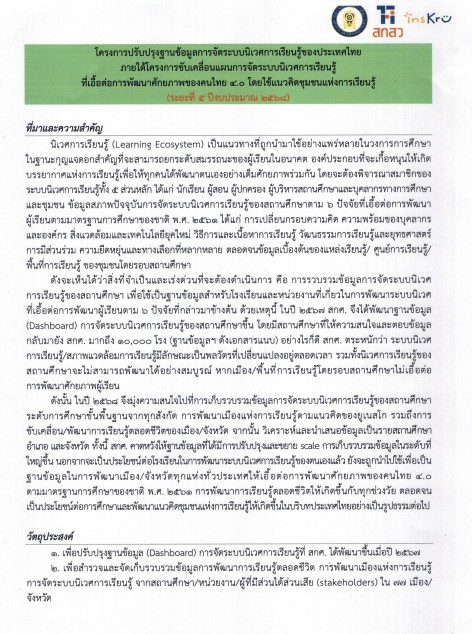 ประชาสัมพันธ์ฐานข้อมูลการจัดระบบนิเวศการเรียนรู้ของประเทศไทย (Thailand Learning Ecosystem Dashboard)