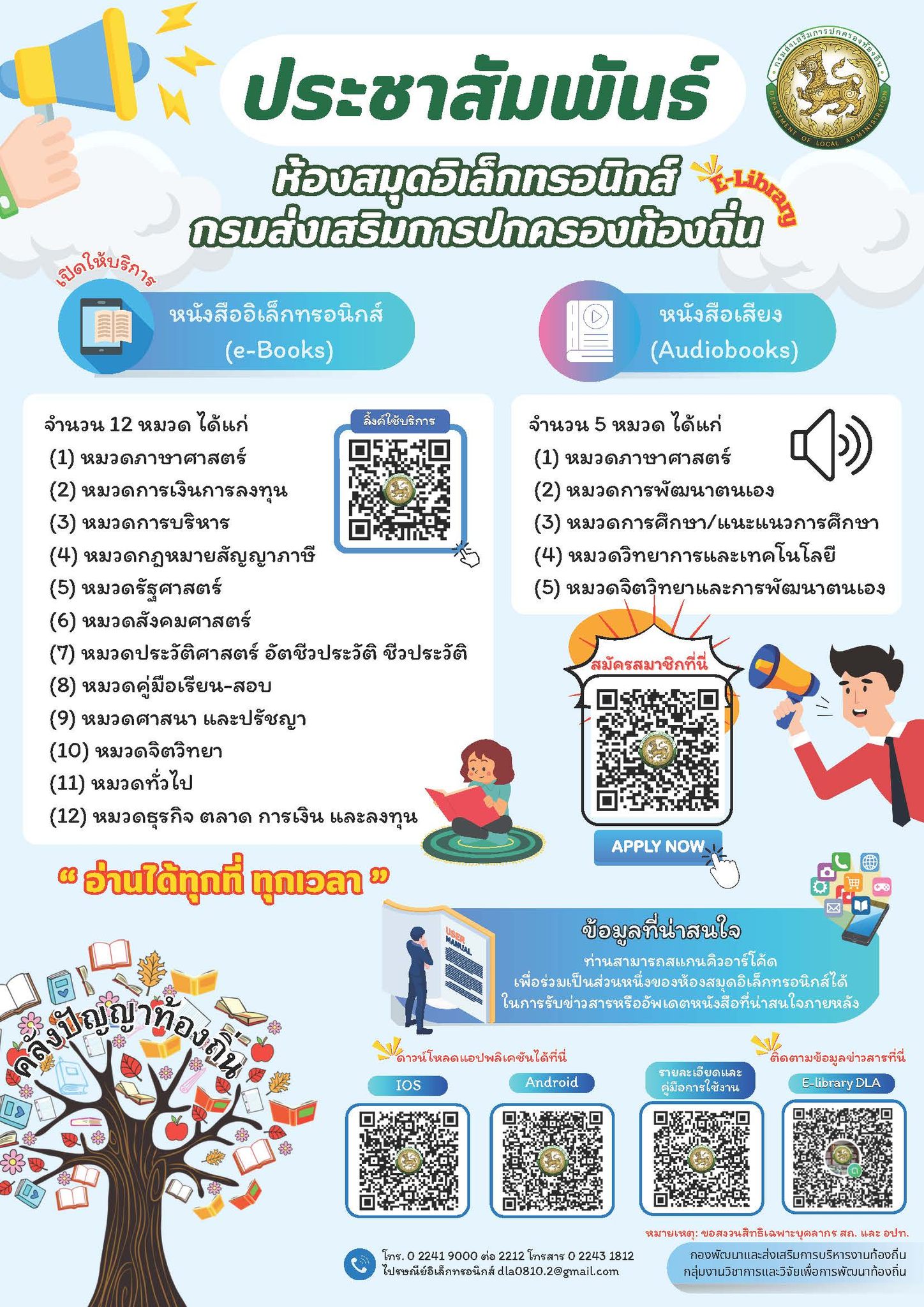 ประชาสัมพันธ์ห้องสมุดอิเล็กทรอนิกส์ (E-Library) ของกรมส่งเสริมการปกครองท้องถิ่น